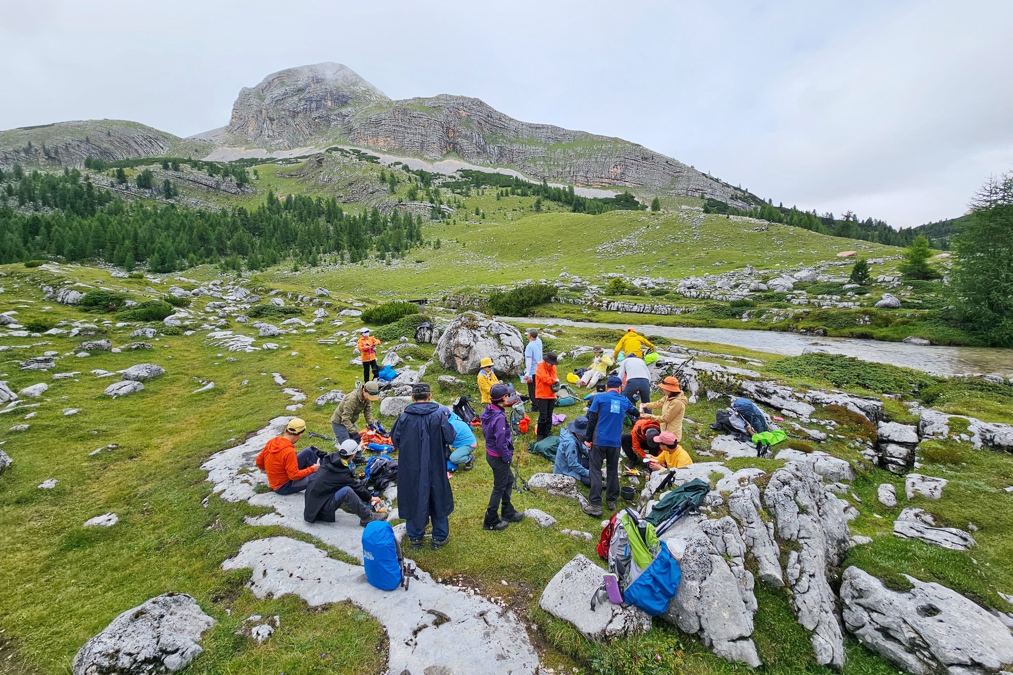 트레커들은 돌로미테에서 처음 대하는 아름다운 모습에